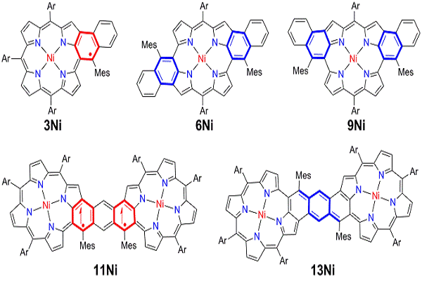 图1.本文报道的萘/蒽稠合的卟啉单体和二聚体