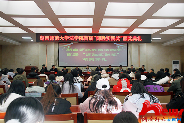 (记者 廖思茹)近日,我校在法学院205会议室举行首届“闻胜实践奖”颁奖仪式。湖南闻胜律师事务所合伙人、奖学金设立者王东平,我校副校长蒋新苗出席典礼。仪式由法学院党委书记于烽主持。