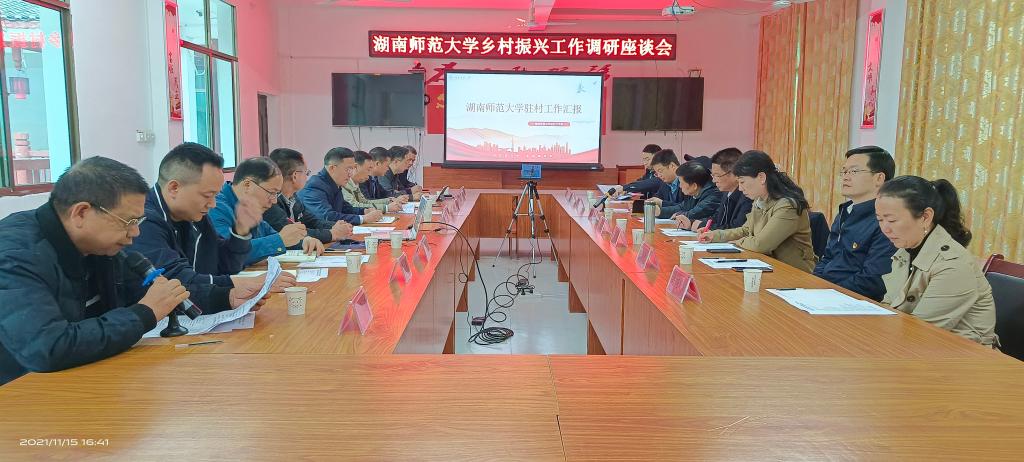 龚红果代表邵阳市委市政府感谢我校全体师生在对口帮扶工作中的付出,充分肯定了我校在脱贫攻坚工作中取得的成绩。他认为,在中央和省委作出乡村振兴部署后,我校迅速派出工作队继续帮扶绥宁县,体现了高度的政治担当和对绥宁人民的厚爱,希望我校能够依托强大的教育资源,继续关心、支持绥宁乡村振兴和教育事业发展。他还就花园阁村的规划设计、发展思路等提出意见和建议。