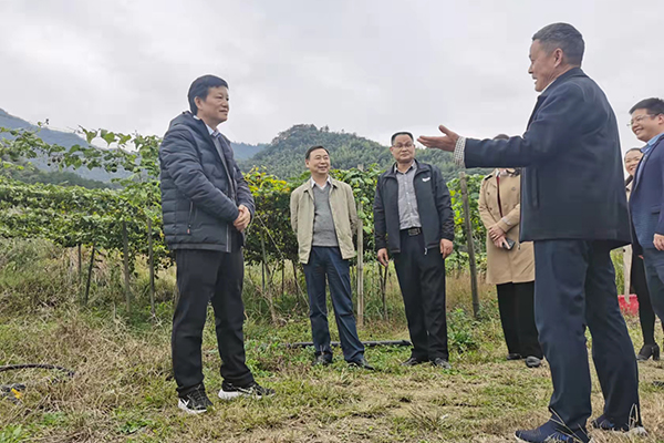 下午三时,蒋洪新、唐贤清一行视察了花园阁村的文化广场及村容村貌后,驱车前往我校重点帮扶的产业--罗汉果基地进行调研,向产业带头人刘柏生详细了解产业发展情况。