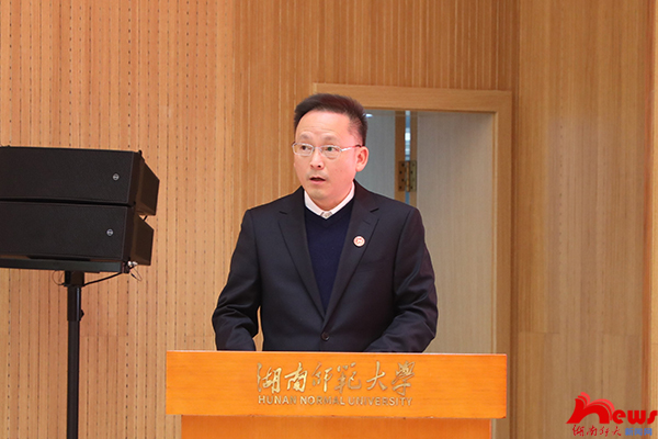 蒋洪新对各位嘉宾的到来表示热烈欢迎和衷心感谢,对中共党史党建研究院的成立表示热烈的祝贺。他指出,学校自1938年创建之日起就以“文化的先进,国民的导师”为理想,将自身的发展与国家前途、民族命运紧密相连,始终扎根中国大地办教育。中共党史党建研究院的成立既是传承湖湘红色文化的内在要求、弘扬伟大建党精神的具体实践,也是建设“双一流”高校应有的作为、办好社会主义大学的责任所在。学校在中共党史研究方面拥有着扎实的研究基础,在人才培养、师资队伍、理论研究和学科建设方面有传统、有底蕴、有人才、有成就。他强调,面向未来,学校党委将举全校之力,汇聚优势力量,提供坚强保证,大力推进党史党建研究院的建设,努力将其打造成为国际水准、中国气派、湖湘特色的学术研究新平台、理论智库新标杆、资政育人新阵地,为党的各项事业发展培养高质量人才,为服务“三高四新”战略、推进国家经济社会发展贡献更多智慧和力量。