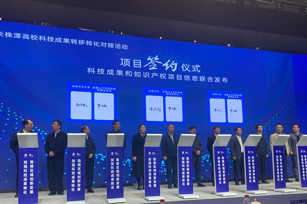 (通讯员 何志霞)12月8日,我校参与主办的2021年长株潭高校科技成果转移转化对接活动在岳麓科创港举行,副校长谢资清出席活动并见证项目签约。
