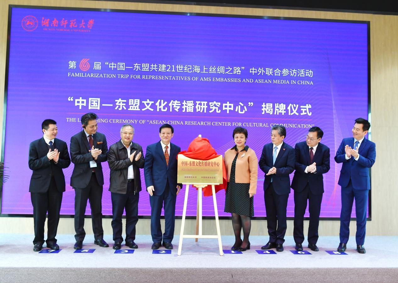 “中国—东盟共建21世纪海上丝绸之路”中外联合参访团到华亿体育登录参访,并见证“中国—东盟文化传播研究中心”揭牌仪式。