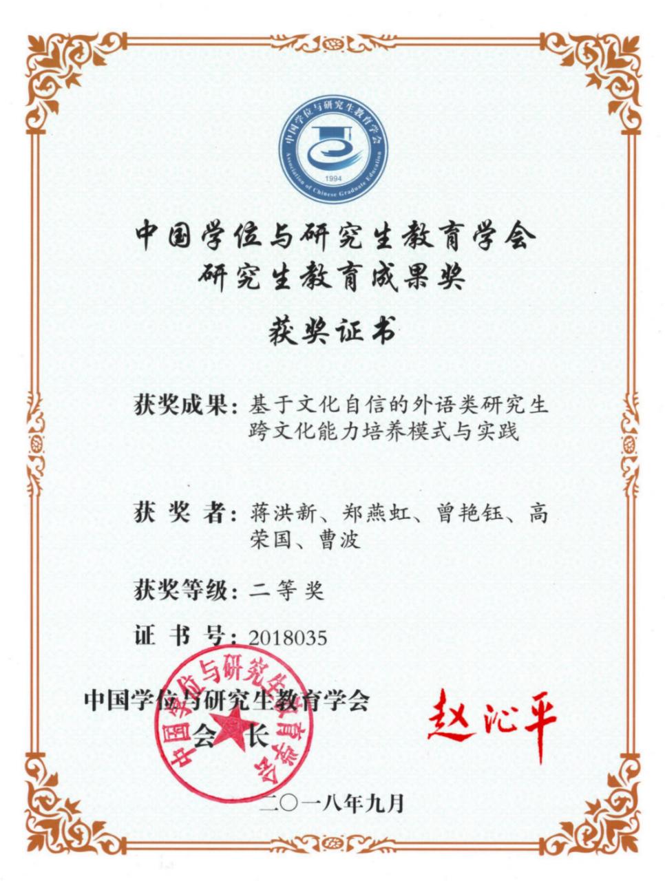 蒋洪新等主持的研究生教育改革成果系第三届中国学位与研究生教育学会研究生成果唯一的外语类获奖成果