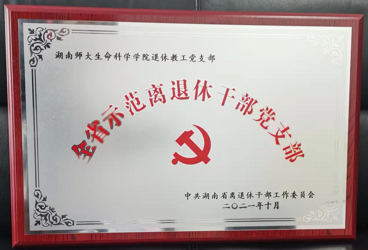 (供稿 离退休工作处)近日,中共湖南省委离退休干部工作委员会下发表彰文件,我校生命科学学院退休教工党支部荣获第六批“全省示范离退休干部党支部”称号。