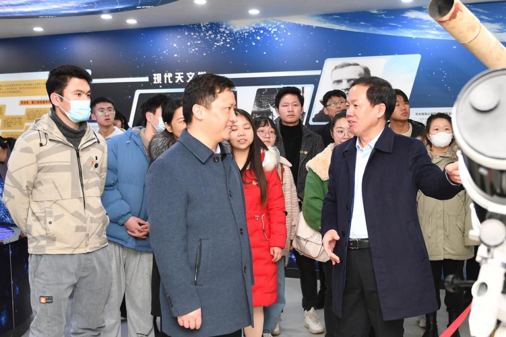李志超一行参观了我校世界一流学科建设展厅,在天文馆参加了“团团陪你看星空”主题活动。活动中,他仔细听取了共青团员代表的学习生活情况,并代表共青团湖南省委送去了慰问金和新年的问候。他充分肯定了我校在学校发展和共青团工作上取得的成绩,希望学校能为建设社会主义现代化新湖南培养更多可担重任的青年人才。他勉励同学们要牢记习近平总书记的嘱托,坚定理想信念,练就过硬本领,为湖南的发展贡献青春力量。