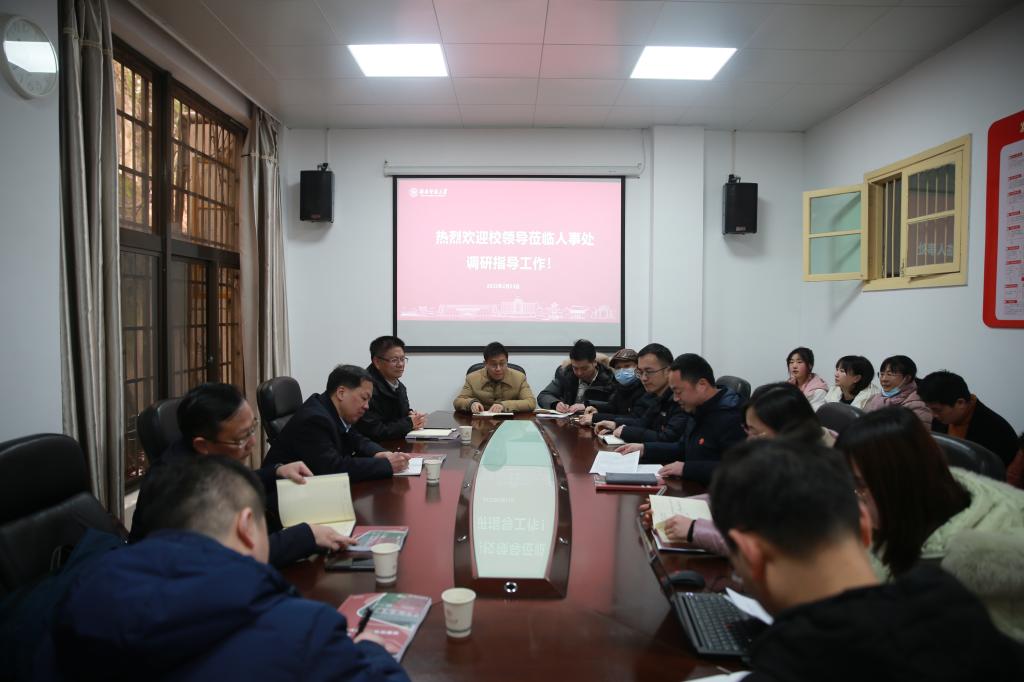 (供稿 人事处)2月23日上午,校长刘起军到人事处专题调研学校人事人才工作。调研座谈会由副校长唐贤清主持。