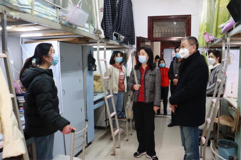 在学生宿舍,校领导与同学们亲切交流,询问了同学们的学习生活情况,并嘱咐大家,在疫情防控期间遇到任何困难要及时告知学校,学校将全力做好服务工作,为同学们的学习生活保驾护航。他们希望同学们能严格按照学校疫情防控工作要求,减少不必要的活动,保持健康心态,与学校共克时艰。