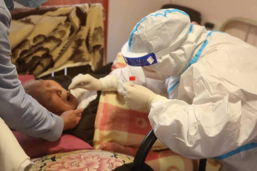 在完成核酸检测任务的同时,王齐向老同志送上了慰问信和慰问物资,详细了解了生活困难家庭的现状,鼓励老同志及其家属、陪护人员坚定必胜信心,配合防控管理,做好个人防护,尽快完成疫苗接种,坚持按要求做好核酸检测。