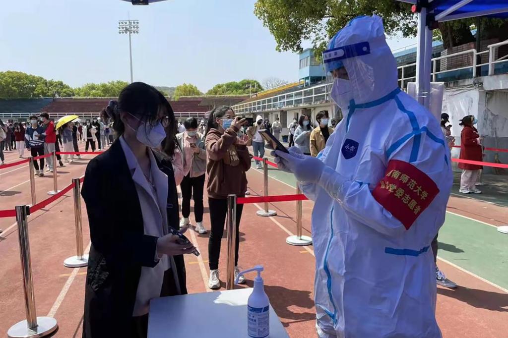 到目前为止,共有150余名党员参与志愿者行动。他们分别在学校体育馆、田径场、南院、天马学生公寓、德智园学生公寓、长塘山小区等多个点进行核酸检测志愿工作。