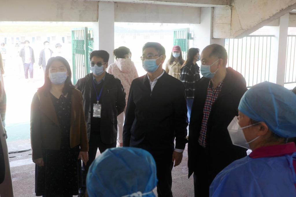 罗予武一行实地走访了我校田径场检测点和华亿体育登录片区防疫前线指挥部,慰问了抗疫一线的医务人员和志愿者,并听取了相关负责人对我校疫情防控期间线上教学、日常检测、志愿服务等工作的汇报。