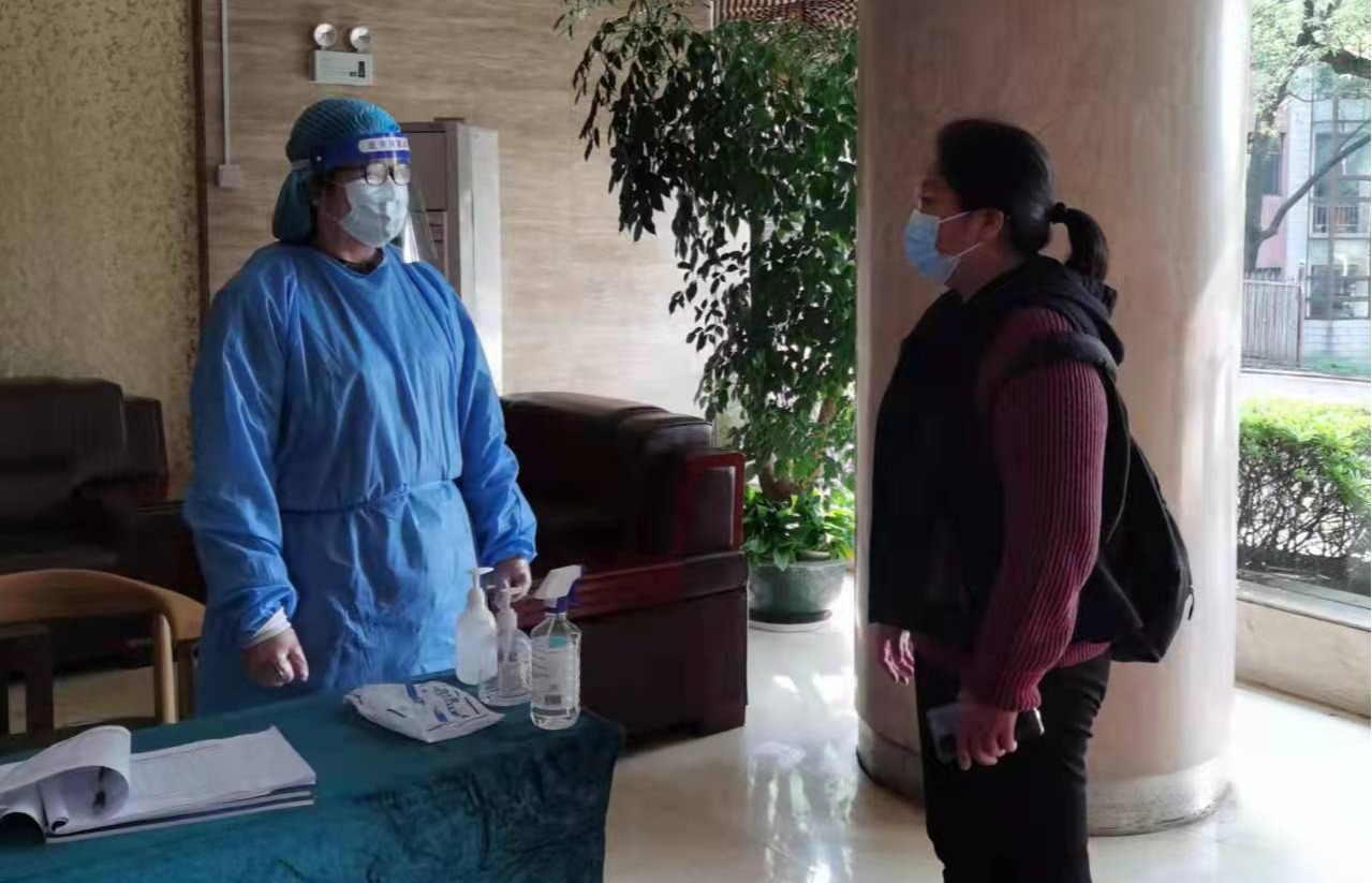 全力奋战在疫情一线的护士长袁秋慧和彭庚英一起连续七天驻守红楼隔离区,为红黄码师生服务。无论白天黑夜,及时保障隔离师生全方位需求,敏锐发现学生心理问题,及时提供心理疏导。袁秋慧还与胡聪聪执行二里半校区黄码上门采集任务,由于疫情管控,他们每天上门为行动不便的师生进行核酸采集,穿着防护服每日行走两万余步。