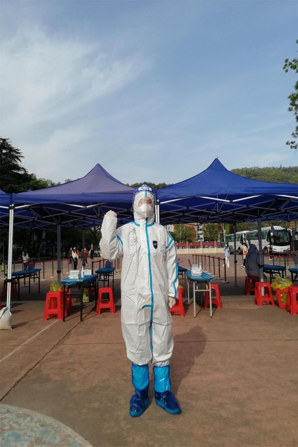 3月27日晚5点多,正在办公室值班的部门工会专职副主席李洋看到学校发布的紧急驰援体育馆核酸检验的通知后,立即报了名,“我离得近,马上到!”