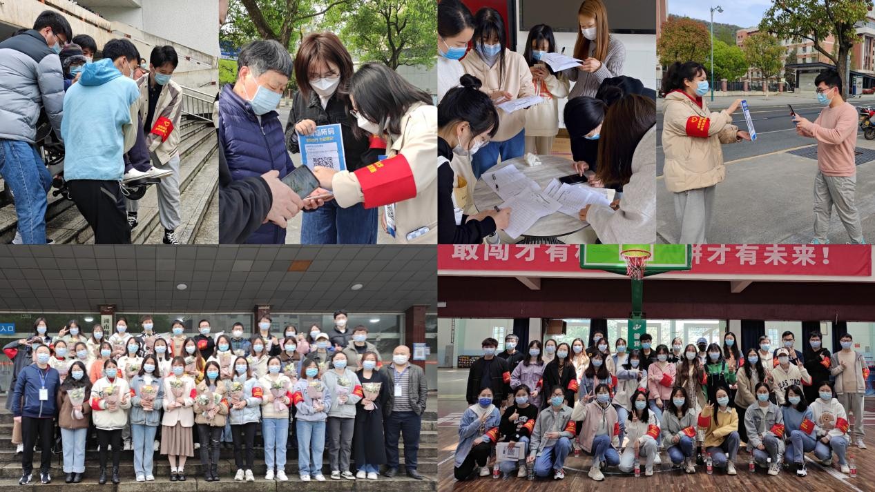 逆风而行,师生主动参与志愿服务活动凝聚抗疫力量。以疫情为命令,同时间赛跑,研究生志愿者们以不同方式在不同岗位贡献青春力量。3月29日起至今,352名研究生主动请缨,加入疫情防控第一线,他们行走于核酸检测现场、研究生公寓,参与了核酸检测现场志愿服务工作7次,研究生公寓防疫物资发放工作1次,累计志愿服务时长9514小时。德智园成立了临时党支部,桃花坪校区组建了党员学生志愿团队,学生党员树立模范榜样,彰显了抗疫“奋斗红”。与研究生志愿者一起战斗在一线的,还有研究生院4名教职工志愿者,他们化身“大白”,用爱为师生们筑起坚固的疫情防线。