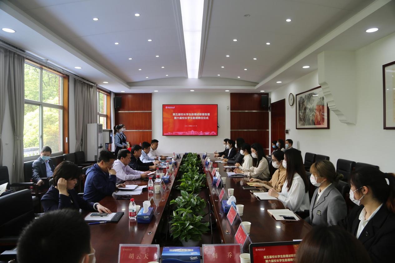 (记者 马铁泉 刘姣)4月21日下午,学校第五届校长学生助理述职报告会暨第六届校长学生助理聘任仪式在校办公楼二会议室举行。校长刘起军、副校长王辉出席仪式。仪式由校团委书记陈天嵩主持。