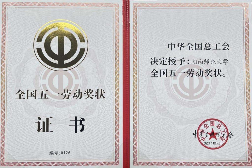 (记者 马铁泉 刘姣)四月的长沙春和景明,万物勃发。4月28日,从全国总工会传来喜讯,我校作为湖南省高校唯一代表,荣获全国“五一劳动奖状”。这既是对湖南省高等教育为教育强国作出卓越贡献的高度肯定,也是对我校高质量发展的高度赞誉。