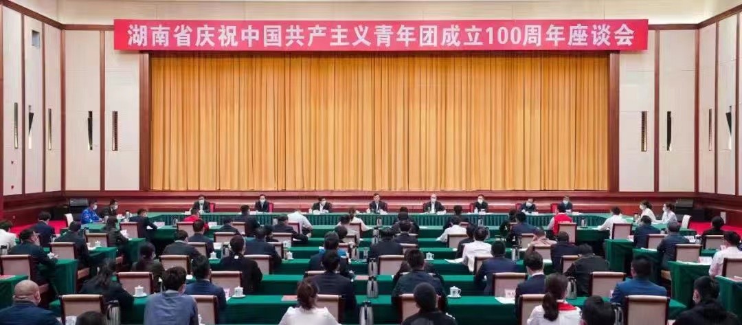 (供稿 校团委 学工部)5月11日上午,湖南省庆祝中国共产主义青年团成立100周年座谈会在长沙召开。省委书记、省人大常委会主任张庆伟与全省广大共青团员和各级共青团组织、团干部代表一起,深入学习贯彻习近平总书记在庆祝中国共产主义青年团成立100周年大会上的重要讲话精神,共同庆祝中国共产主义青年团成立100周年。省领导隋忠诚、谢卫江、杨浩东、周农、何报翔、胡旭晟出席座谈会。