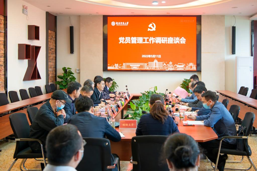校党校常务副校长兼党委组织部副部长袁道香就学校党员分类管理、流动党员管理、发展党员、党员档案管理等工作进行了专题汇报。教育科学学院党委书记汪植英、公共管理学院党委书记余望成、离退休党委书记尹建新等分别就推进研究生党员管理、学生党支部“第一书记”工作、离退休流动党员管理等工作作了专题发言。