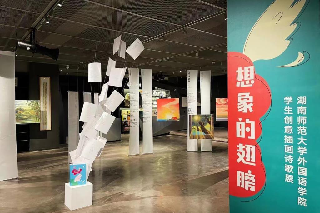 据悉,本次展览的全部诗歌和插画作品来源于我校外国语言文学学科推出的“跨文化能力培养系列丛书”之《想象的翅膀——中国学生创意写作诗歌集》。该诗歌集收录了56篇由我校外国语学院学生原创的中文诗歌,是近年来我校外国语言文学学科在培养学生跨文化交际、沟通与写作能力教育教学改革方面的系列成果之一。