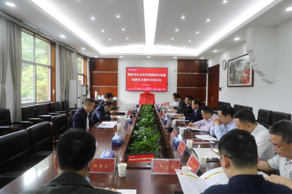 湖南省社科联软科学研究室主任李邦铭,基地主要团队成员和学校相关职能部门负责人参加揭牌仪式。