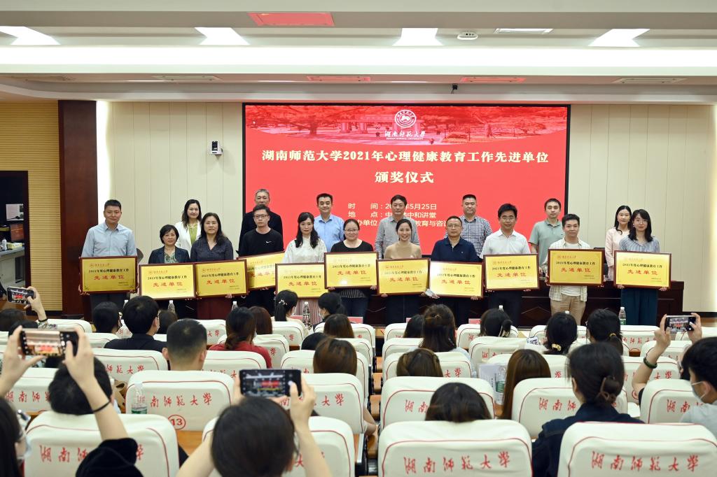 会上还进行了我校2021年心理健康教育工作先进单位颁奖仪式以及“心理健康教育素质拓展培育基地”和“学院特色成长辅导室”授牌仪式。