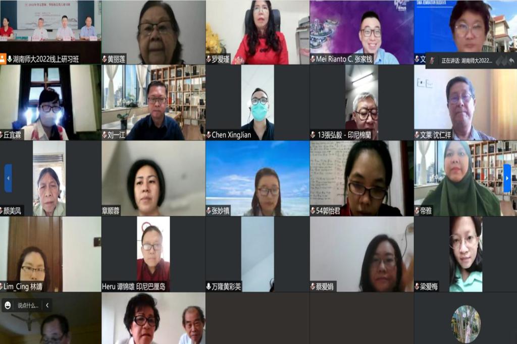 (通讯员 刘莉莎)6月18日上午,由我校举办,印度尼西亚华文教育联合总会协办的2022年华文教师、华校校长线上研习班开班仪式在田家炳教育书院111教室举行。印度尼西亚华文教育联合总会主席郑洁珊、副主席刘一江,印度尼西亚苏北省华文教育促进会主席黄世平、执行主席赵翠丽,我校副校长唐贤清出席开班仪式。仪式由国际汉语文化学院院长蔡颂主持。
