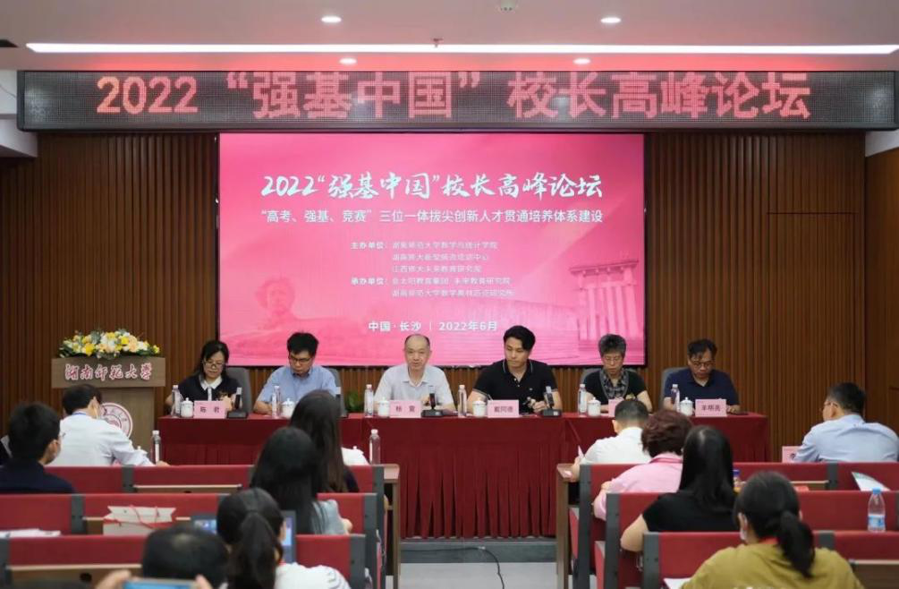 (供稿 数学与统计学院)6月18日,2022“强基中国”校长高峰论坛在桃子湖创意园湘师书院开幕。此次论坛由我校数学与统计学院、新型师资培训中心与江西师范大学未来教育研究院联合主办。副校长杨震出席活动。