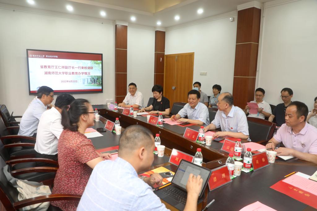 王仁祥感谢我校一直以来对教育厅工作的支持,并充分肯定了学校的办学成绩。他指出,职业技术教育已经进入发展的“黄金期”,要树立职教发展新理念,构建“纵向贯通、横向融通”的职教发展新格局。他表示,学校在职业教育领域砥砺深耕、成果丰硕,教育厅将进一步加强对学校职业技术教育发展的支持力度,帮助学院在职教人才培养、师资培训和高端智库建设等方面取得新突破,擦亮湖南省职业技术教育的崭新名片。