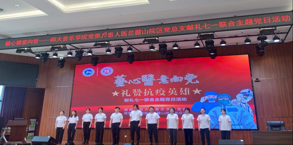 主题党日活动书丹心。“七一”前后,学校先后组织教师新党员集体谈话、推进开展“光影铸魂”电影党课活动、组织学习《中国共产党党徽党旗条例》、组织收看高校党组织示范微党课展播、组织党支部书记参与全国网络培训、为离退休党支部补助活动经费,着力强化党员教育管理实效。连日来,各二级党组织也开展了形式多样的主题党日活动。法学院举行新党员入党宣誓活动,90岁高龄的杨祥辉面对党旗进行庄严宣誓,表达一生一世心向党的追求。工程与设计学院召开“新时代做最好的党员”座谈会,与会党员畅所欲言,表达感党恩、跟党走的决心和信心,为学院党建工作建言献策。历史文化学院党委组织开展手抄入党誓词活动,在一笔一画中进一步坚定信仰和初心。医学院党委、信息科学与工程学院党委、后勤集团党委等单位分别赴红色教育基地开展主题党日活动,寻访红色足迹、重温入党誓词。音乐学院党委和省人民医院岳麓山院区党总支联合开展“疫心艺意向党,礼赞抗疫英雄”主题党日活动,用音乐表达敬意,用歌声向“七一”献礼。