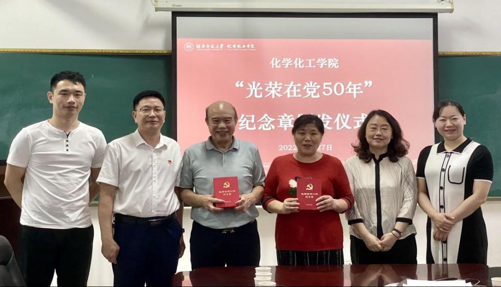 颁发纪念章映初心。学校为截至今年7月1日党龄满50年、一贯表现良好的55名老党员颁发“光荣在党50年”纪念章,纪念章由各二级党组织通过举行仪式或上门颁发等形式送到受章老同志手中,切实增强了广大老党员的荣誉感、归属感、使命感。广大受章党员纷纷表达了对党组织的感恩之情,通过讲党课等方式讲述了自己的初心故事,并表示将继续发挥党员作用,老有所为。