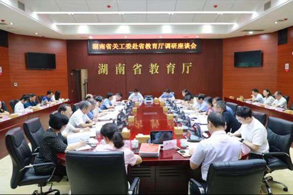 (供稿 校关工委)6月29日,省关工委主任杨泰波一行赴省教育厅调研全省教育系统关心下一代工作。省教育厅党组书记、厅长夏智伦出席座谈会,我校党委副书记周俊武出席座谈会并致辞。座谈会由省委教育工委副书记、省教育厅党组成员王建华主持。