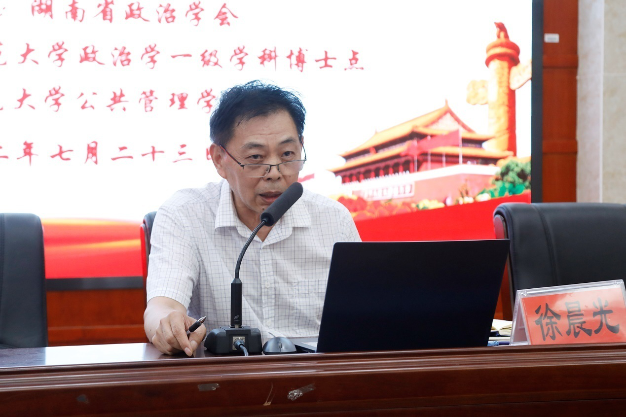 (通讯员 付振奇 记者 刘姣 袁著)7月23日上午,湖南省政治学会2021年年会暨“中国共产党一百年与中华民族伟大复兴”学术研讨会在我校景德楼召开。湖南省政治学会会长徐晨光、常务副会长张思京,我校校长刘起军出席会议。会议由湖南省政治学会副会长兼秘书长、中共湖南省委党校马克思主义学院院长王海峰主持。