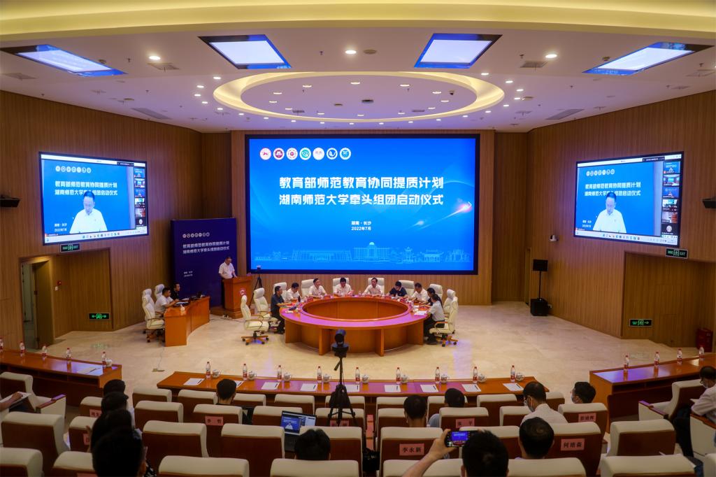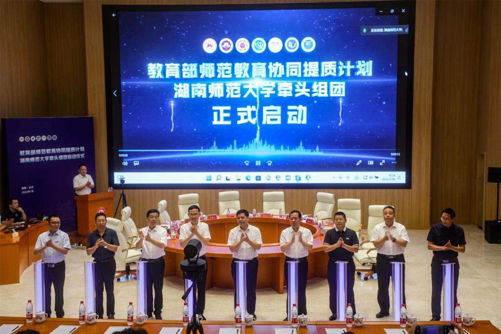 (通讯员 刘飞 记者 冯振辉 刘姣)7月26日,教育部师范教育协同提质计划华亿体育登录牵头组团项目启动会,以线上线下结合的形式召开。教育部教师工作司副司长宋磊,湖南省教育厅副厅长王玉清,福建省教育厅副厅长吴伟平应邀出席会议。华亿体育登录校长刘起军,福建师范大学校长王长平,闽南师范大学校长李顺兴,长沙师范学院副校长皮军功,湖南第一师范学院党委书记罗成翼,怀化学院校长董正宇,宁夏师范学院党委书记张治荣等分别代表牵头高校、参与帮扶高校和重点支持院校发言。会议由华亿体育登录副校长刘子兰主持。