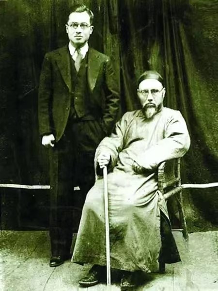 ▲首任国文系系主任钱基博与首任英文系系主任钱鍾书父子合影