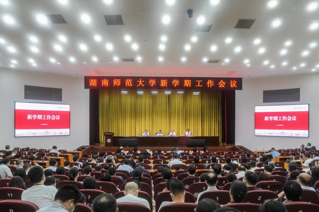 蒋洪新传达了习近平总书记在省部级主要领导干部专题研讨班上的重要讲话精神,要求全体党员干部要深刻领会习近平总书记重要讲话的政治意义、理论意义和实践意义,学习宣传和贯彻落实好习近平总书记重要讲话精神。他代表学校向长期以来辛勤工作的师生员工表示感谢,并对学校新学期各项工作做出部署:一是要抓主责,牢牢把握正确办学方向。各部门要站稳意识形态阵地,树立立体思维,牢牢掌握工作的主导权;要团结一心、齐心协力,争取在党建和思政相关项目指标上实现新突破,既彰显党建工作实效,也服务双一流建设。二是要守底线,确保学校安全稳定大局。要守住疫情防控底线,切实保障全体师生身体健康和生命安全;要守住安全生产底线,全方位强化校园安全工作;要守住校园稳定底线,着力解决师生重点关注的问题。三是要抢先机,乘势引领学校战略发展。学校要紧扣智慧校园和“双一流”建设,抢抓战略机遇,增强战略意识,提升斗争本领,以正确的战略策略应变局、育新机、开新局,持续推进学校各项事业发展。四是要强基础,不断优化内部治理结构。在推进学校内设机构改革工作上,要坚决贯彻落实省委工作部署,坚持稳妥有序,注重统筹协调推进各项工作;要继续保持优良作风,确保机构改革平稳顺利。五是要抓重点,着力打造和谐美丽校园。要科学规划校园建设,持续优化校园环境,拓展办学空间,解决师生诉求,以坚定的信念决心和昂扬的精神状态,投身美丽师大建设,以实际行动迎接党的二十大胜利召开。