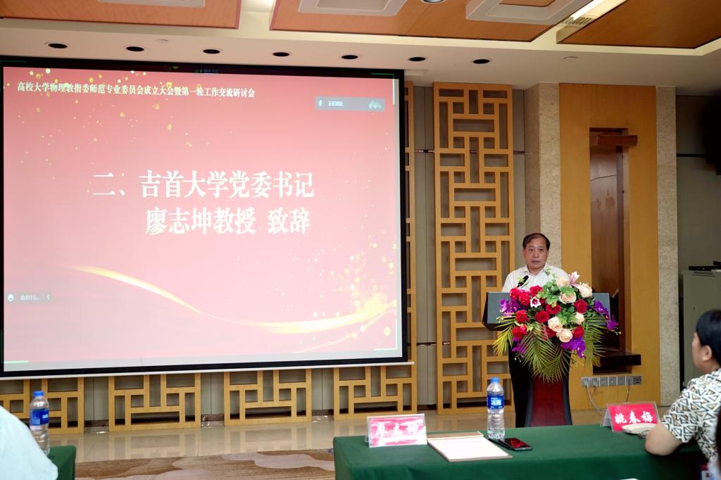 (供稿 物理与电子科学学院)8月27日至28日,由教育部高等学校大学物理课程教学指导委员会主办,我校和吉首大学联合承办的师范类专业工作委员会成立大会暨第一轮工作交流研讨会在吉首召开。教育部高等学校大学物理课程教学指导委员会主任委员王青、吉首大学党委书记廖志坤、我校纪委书记姚春梅、师范类专业委员会主任宋峰出席会议。成立大会由教育部大学物理教学指导委员会秘书长魏斌主持。