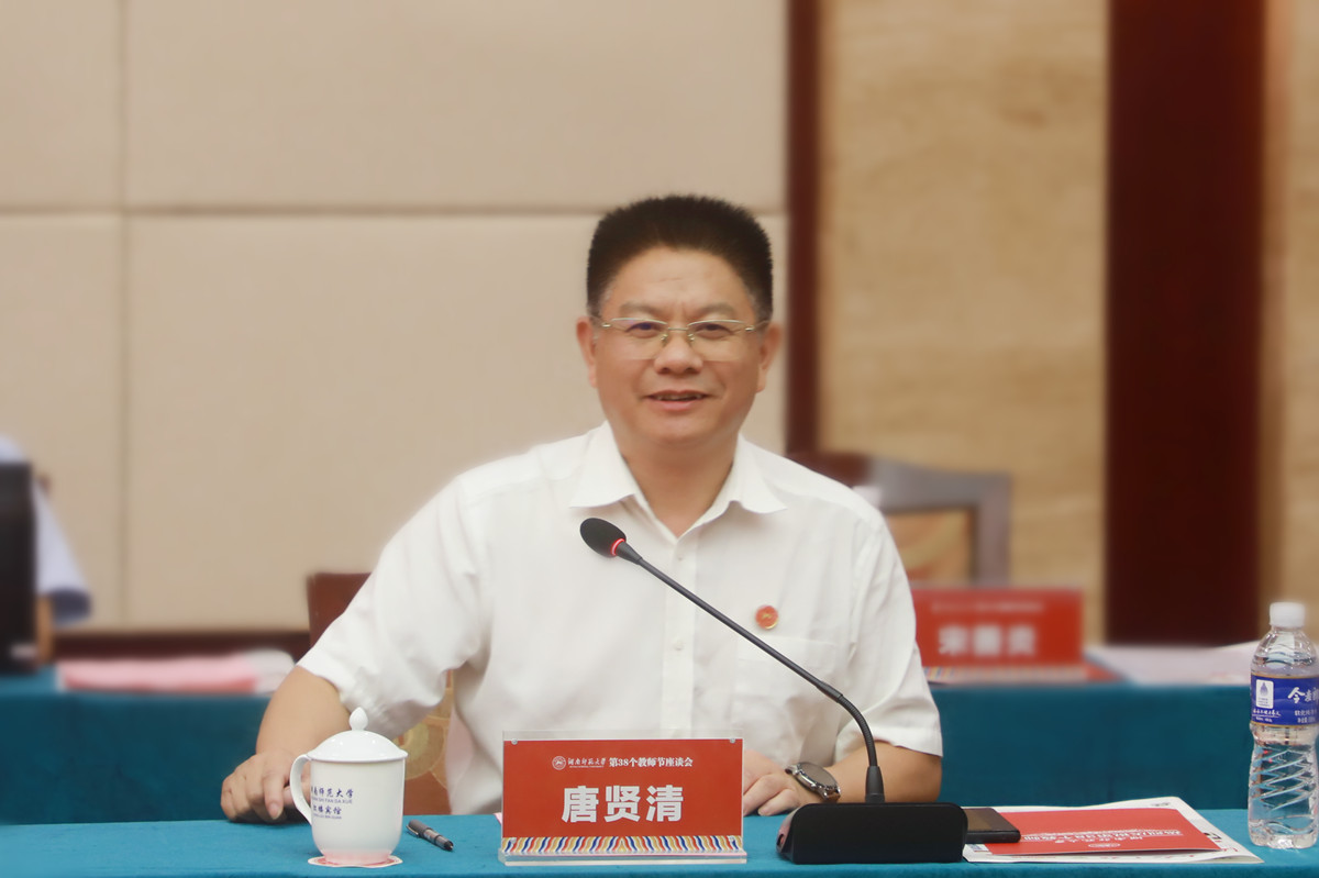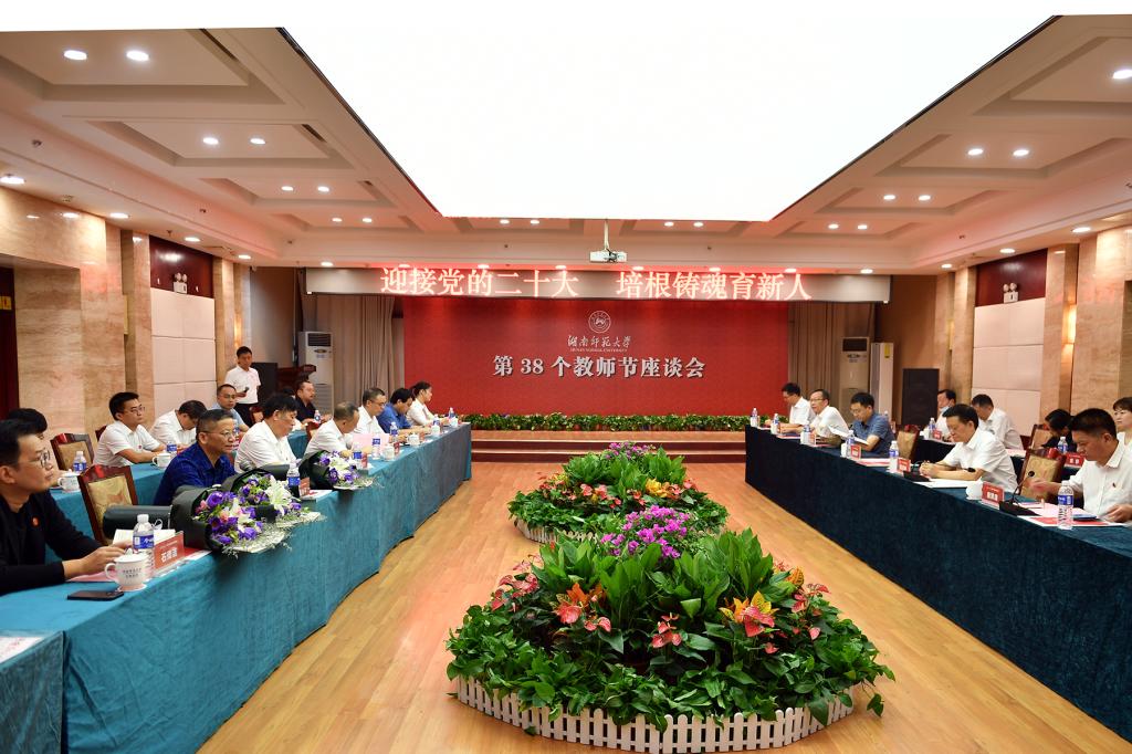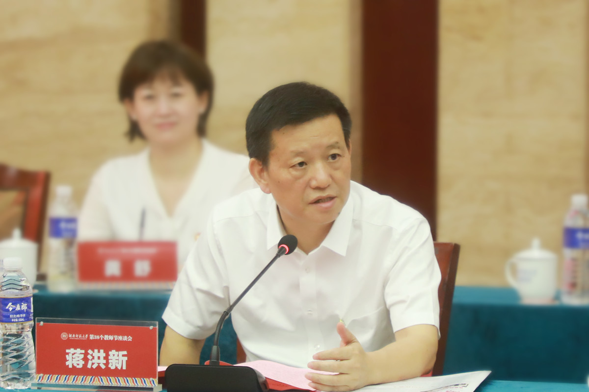 (记者 马铁泉 刘茵 童臻熙)9月9日上午,在第38个教师节来临之际,学校召开教师代表座谈会,校党委书记蒋洪新出席会议,会议由副校长唐贤清主持。