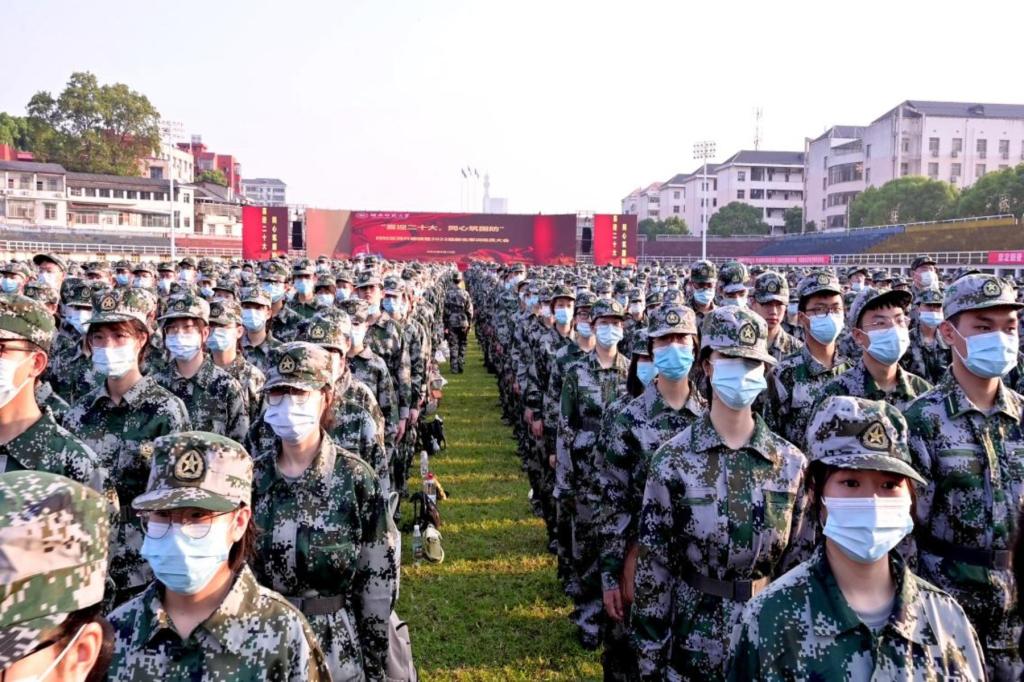 四个校区学生代表、教官代表、教师代表依次发言,从不同视角诠释了一心向党、爱我国防、矢志奋斗的决心。