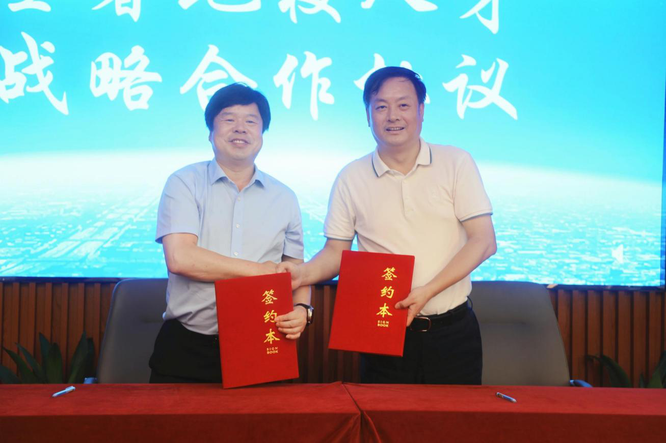 徐仲仪与王辉代表双方签订地校人才战略合作协议。