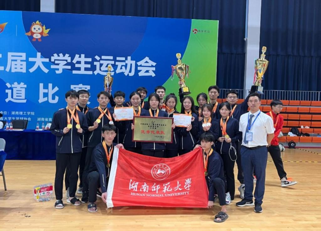 (通讯员 时钰 何东萍 任雨婷)9月22日,湖南省第十二届运动会跆拳道比赛在湖南理工学院落下帷幕,我校跆拳道队荣获11金、7银、1铜,并获得品势团体总分第一、竞技团体总分第一、湖南省优秀代表队和体育道德风尚奖等荣誉称号。