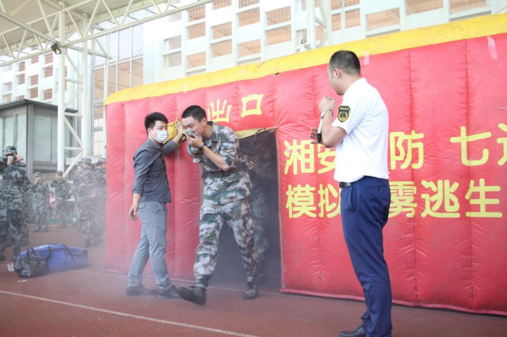 湘安消防公益中心相关人员,我校保卫处、学工部、各学院职能部门负责人及2022级全体新生参加消防演习。