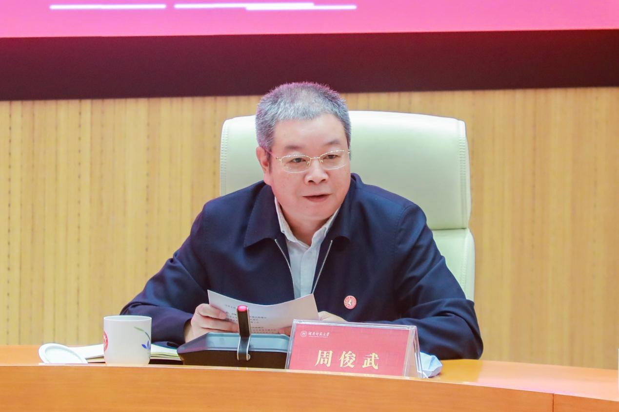 周俊武强调,做好疫情防控与安全稳定工作一是要提高站位。防疫管控、安全稳定没有小事,各单位要提高认识,做好常态化工作,特别要贯彻落实好相关会议精神,及时传达疫情防控和安全稳定工作会议精神,确保工作落实到位。二是要加强防范。要守牢疫情防控和安全稳定底线,坚持预防为主,防范在先,全方位、全流程做好疫情防控与安全稳定工作。三是压实责任。要切实扛起疫情防控和安全稳定责任,严格落实各项常态化防控措施,做到“守土有责、守土担责、守土尽责”。