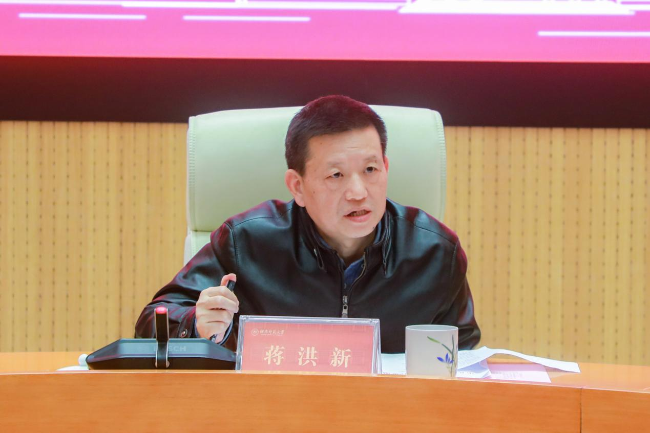蒋洪新强调,党的二十大召开在即,学校要扎实做好防风险、战疫情、护安全、保稳定等各项工作,全力以赴为党的二十大胜利召开营造良好环境。他指出,一是要统一思想认识,要高效统筹疫情防控、安全稳定和学校发展,各单位要克服惯性、惰性思维,严格按照上级要求,抓实抓细各项工作。二是要提高管理水平,各单位要按照“科学精准、温暖有情”的标准,要强化协同配合,做好日常监管和专项检查相结合。三是要层层落实责任,各单位要严格落实“党政同责、一岗双责、齐抓共管、失职追责”,把疫情防控和安全稳定工作落实到人,同时要开展督查工作,确保各项工作落到实处、取得实效。
