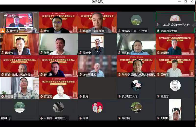 中南大学党委副书记、教授蒋建湘,湖南大学法学院院长、教授黎四奇,中南大学法学院院长、教授许中缘,中华全国律师协会副会长、湖南省律师协会会长杨建伟等专家学者就“新文科背景下法律实践教学暨法律实务课程标准”相关主题与谈分享。吉林大学法学院教授房绍坤作总结发言。