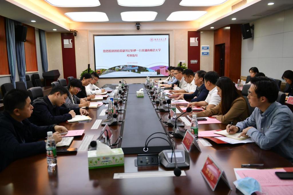 (供稿 校团委)10月20日下午,团省委副书记叶妙一行来我校考察调研,并参加青年师生座谈会。校党委书记蒋洪新陪同调研,副校长王辉陪同并出席座谈会。