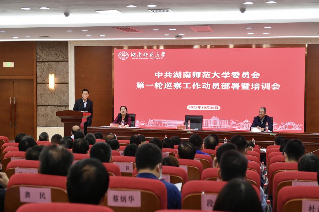 (供稿 党委巡察办)10月25日上午,学校在中和楼342报告厅召开学校党委第一轮巡察工作动员部署暨培训会议,正式启动首轮校内巡察工作。校党委书记、党委巡察工作领导小组组长蒋洪新出席会议并作动员讲话。校党委副书记、党委巡察工作领导小组副组长周俊武出席会议。校纪委书记、党委巡察工作领导小组副组长姚春梅主持会议。党委巡察工作领导小组成员、校纪委委员、党委巡察办和巡察组全体成员、被巡察单位领导班子全体成员、各二级单位党政主要负责人参加会议。