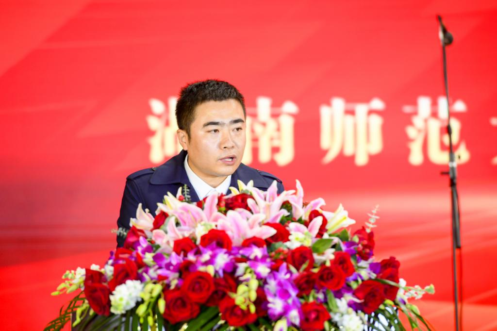 晋职教师代表,物理与电子科学学院任昌亮教授表示,学校为青年老师提供了一个自由包容、不拘一格的工作平台,是一个施展教育抱负、实现科研梦想的地方。自己一定恪守“仁爱精勤”的信条,以德立人、以德立学、以德施教,和全体老师一道承载起建设师大、发展师大的重任。