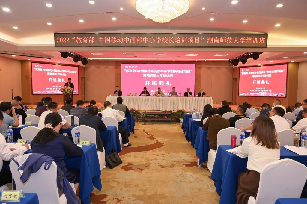 (通讯员 陈甲元)11月10日上午,“教育部-中国移动中西部中小学校长培训项目”在我校开班。国家教育行政学院教师工作与研究部主任兼进修二部主任、教育部中小学校长和幼儿园园长国家级培训项目管理办公室主任于维涛,我校副校长蒋新苗出席开班典礼,此次活动由湖南省教育管理干部培训办公室常务副主任康洪主持。
