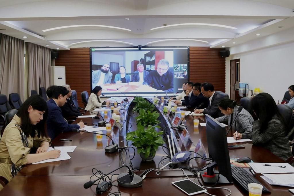 我校与格林卡音乐学院相关单位负责人参加会议。
