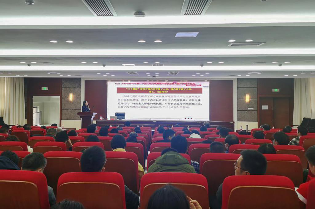 宣讲报告会上,姚春梅从党的二十大的主题和主要成果、过去5年的工作和新时代10年的伟大变革、习近平新时代中国特色社会主义思想的世界观和方法论、以中国式现代化推进中华民族伟大复兴的使命任务、党的二十大报告关于教育的新思想和新要求等方面对党的二十大精神进行解读宣讲。她强调,要深刻领会党的二十大召开的重大意义、科学把握党的二十大精神的核心要义、担当实干把党的二十大精神落到实处。她指出,深入学习宣传贯彻党的二十大精神是学校当前和今后一个时期的首要政治任务,大家要全面学习、深刻领会,牢记空谈误国、实干兴邦,做到“一分部署、九分落实”,全体党员干部要始终站在“教育是国之大计、党之大计”的政治高度,要着力在掌握精神实质上下功夫、在学深悟透上下功夫、在融会贯通上下功夫。确保在思想上、政治上、行动上同以习近平同志为核心的党中央保持高度一致,把握历史主动,增强战略思维,努力培养堪当民族复兴重任的时代新人。